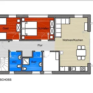 Es bietet eine Küchenzeile mit einer Mikrowelle, einem Wasserkocher und einem Kühlschrank während Ihres Aufenthaltes. Das Restaurant Restaurant Strandallee liegt ungefähr 6 Gehminuten vom Apartment entfernt und serviert deutsche Gerichte.